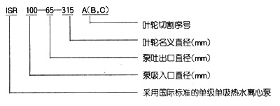 ISR系列單級單吸熱水離心泵共有二十九種基本型,為滿足用戶對泵的不同性能要求,我廠采用了切割葉輪外徑的方法,從而增多了ISR泵的規格。